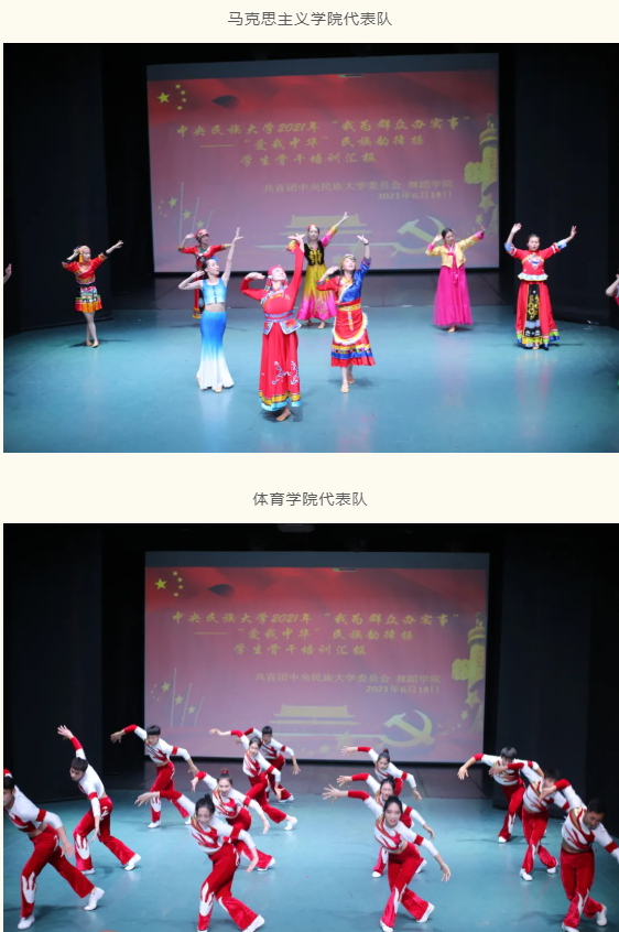 的专业优势,为学校普及、推广民族舞蹈提供专业上的帮助,为全校师生们更全面细致地学习和认识民族文化创造条件,是“我为群众办实事”的生动实践。最后,她希望各学院在此次活动中充分展现学习成果,为民族舞蹈事业的发展、为建党百年献上最美好的祝福。