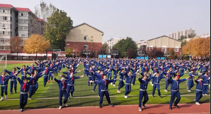 党委副书记王淼的带领下,学生第三党支部书记李飞,支部成员以及入党积极分子、入党申请人分别于11月2日、9日、16日和23日前往七一小学,为小学一、二年级八百余名小学生现场教授指导民族韵律操,现场小朋友不畏风寒,积极努力、认真学习,充分彰显了新时代小学生蓬勃向上的学习风貌和奋斗精神。此次美育志愿服务活动将从11月初一直持续至2022年1月中旬(小学放寒假前),在每周二下午定期举行,授课内容为中学版民族韵律操。金沙娱乐app